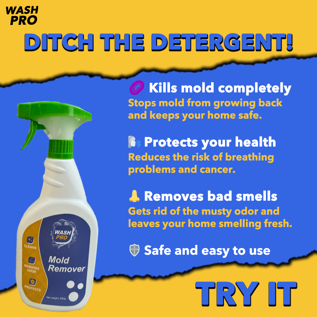 WashPro™ Mold Remover is a strong cleaner that digs deep to remove mold and stops it from coming back. No more harmful mold in your home with our powerful formula. It's the best solution for a healthier living environment!